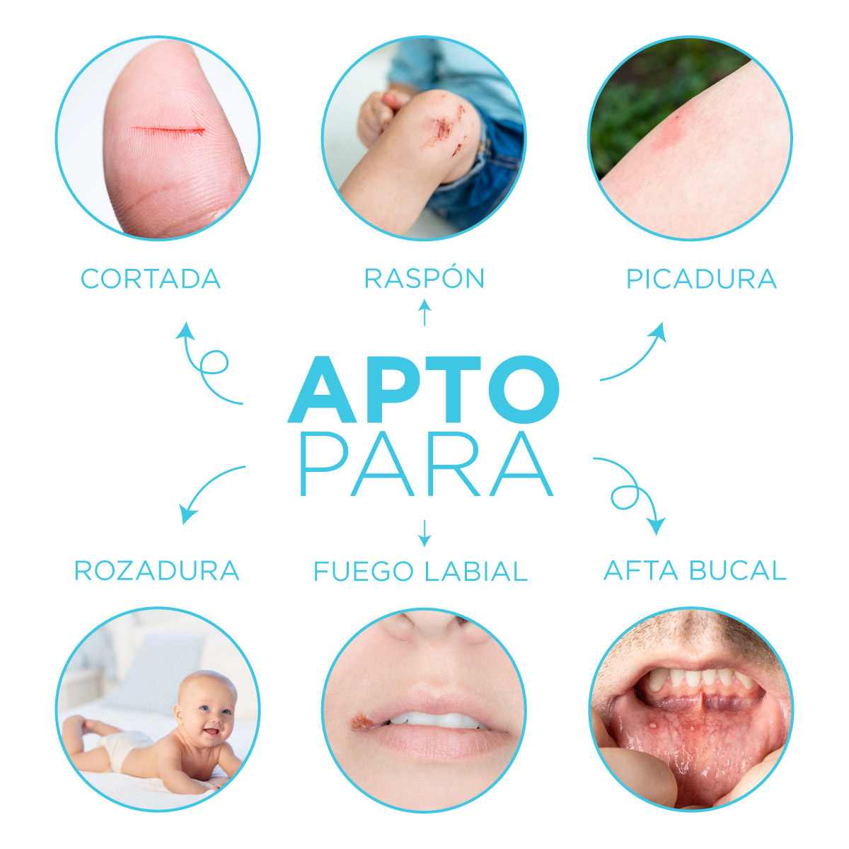 Ideal para el tratamiento de múltiples lesiones cotidianas. Tiene un importante efecto cicatrizante y antiinflamatorio que se combina con su acción microbicida y antioxidante. Perfecto para traer en el bolsillo y resolver las lesiones de forma integral.